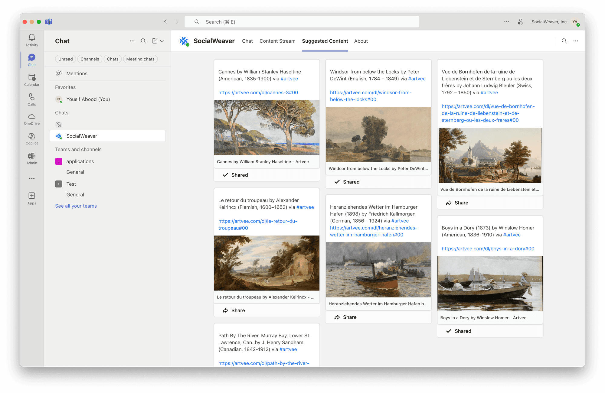 Learn how to use SocialWeaver to share and engage with your organization's LinkedIn posts directly from Microsoft Teams.